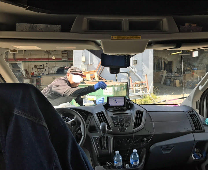 Pulled into Dawson Creek, saw a glass repair shop. Stopped. While we ate lunch inside The Estate we watched them fill our stone chips. (Mr. Fixer has his face blurred out, as I did not have permission to post this photo.)